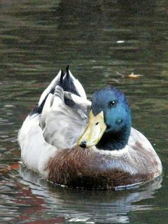 公園内の池で鴨が泳いでいました。